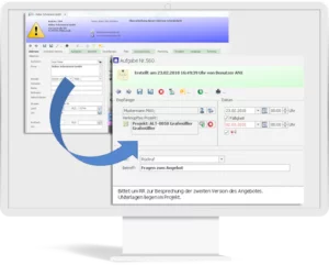 Bei Angebotserstellung kann direkt eine Aufgabe für die Wiedervorlage in 14 Tagen generiert werden. Bei der Abarbeitung der täglichen Aufgaben kann dann wiederum ohne Umwege direkt auf das Angebot zugegriffen werden.