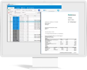 Der unterschriebene Beleg wird gescannt und direkt an den Datensatz angeheftet. Dieser wird zur Abrechnung vorbereitet und die Zeitdaten können aus der digitalen Zeiterfassung übertragen werden.